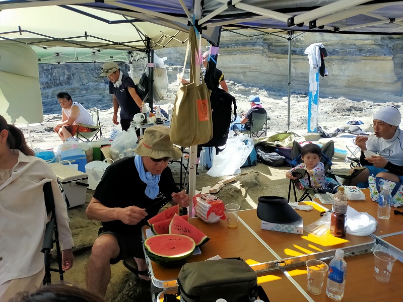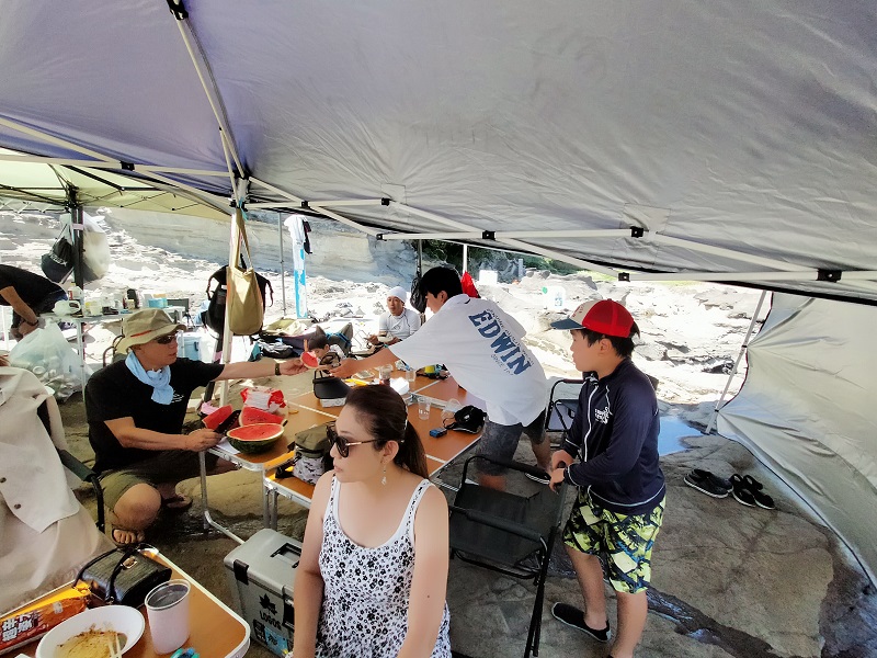 岩の上から飛び込んだり、素潜りでタコやアワビを見つけたり真夏の海を大いに楽しんでいました。