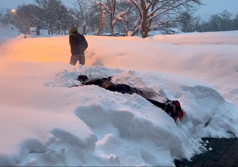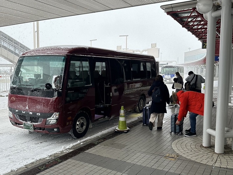 大雪の為飛行機が着陸できるか心配されるなか、無事に新千歳に到着し初日の観光をスタート。しかし大雪…
